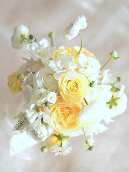 | 花材 | バラ、ラナンキュラス、コスモス、マトリカリア、デルフィニューム、ジャスミン、アスチルベ、ダスティミラー |