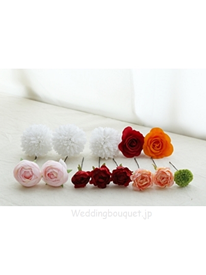 | サイズ | 白いピンポンマム直径約7センチ、バラ約6センチ、ラナンキュラス約5センチ、ミニバラ約3センチ |