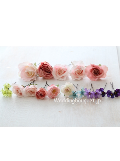 シックなピンク色のバラに、かわいい小花を組み合わせた、落ち着いた依雰囲気のヘッドパーツセットです。。