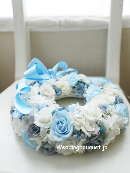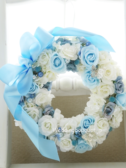 | 品名 | ホワイトブルーのバラのリース |